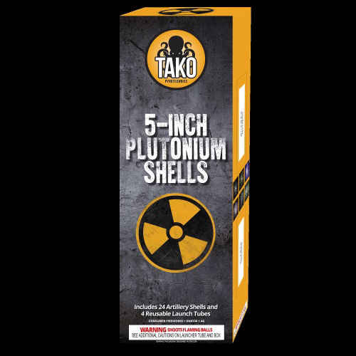 These shells are nuclear! Each 5″ monster artillery shell deflagrates into an amazing display with gold, silver, or red radioactive remains.